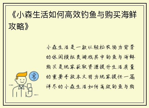 《小森生活如何高效钓鱼与购买海鲜攻略》
