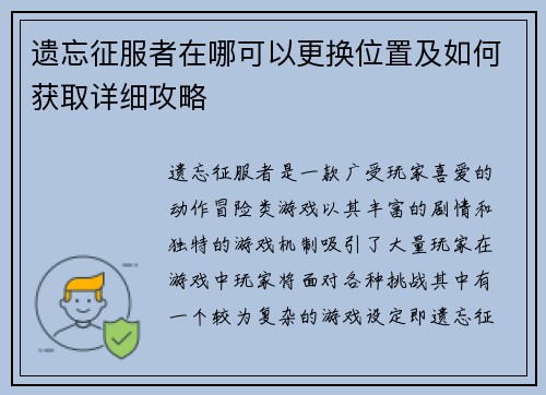 遗忘征服者在哪可以更换位置及如何获取详细攻略